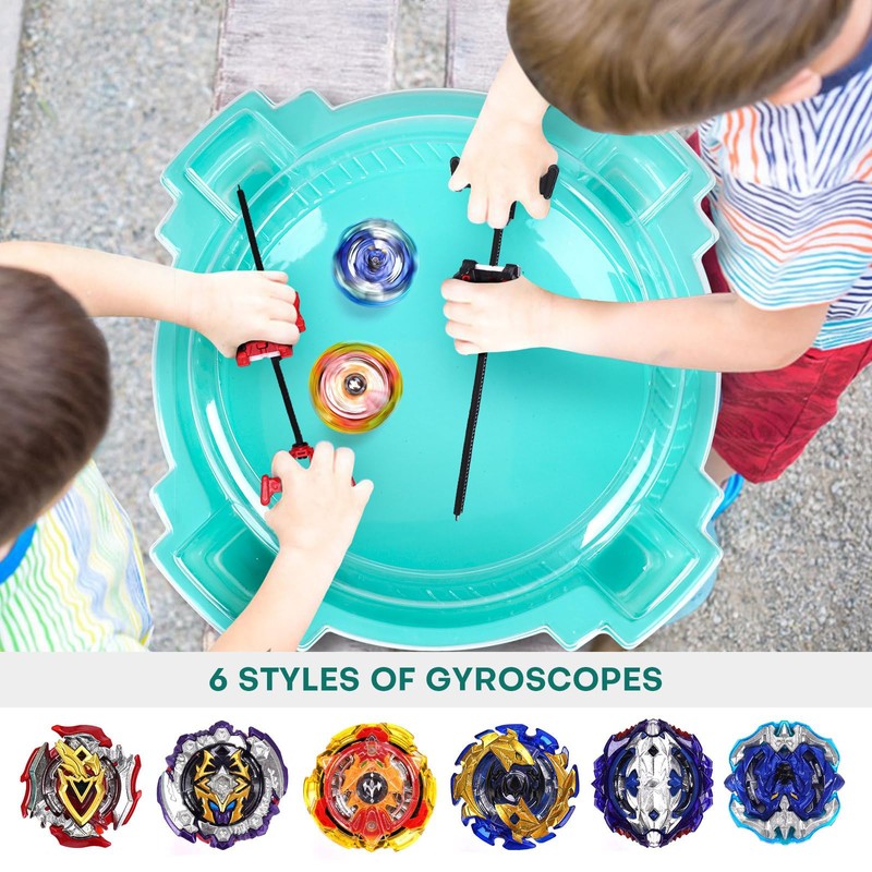 - 【EVERYTHING YOU NEED TO BATTLE】This Burst Set includes 6 Gyros, 2 Spinning Launchers, and a Battle Stadium, giving you everything needed to start your Arena Battling right out of the box. Enjoy intense and exciting battles with friends or family. It’s the ultimate toy set for spinning top enthusiasts