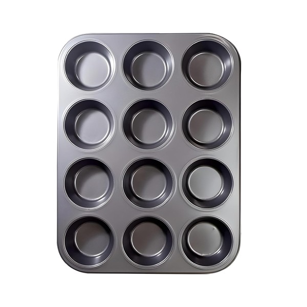 AIBULO 12 Cup Muffin Tray Nonstick, Durable Carbon Steel Baking Tray for Muffins, Cupcakes, Yorkshire Pudding & More