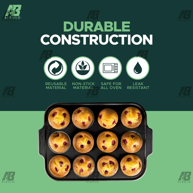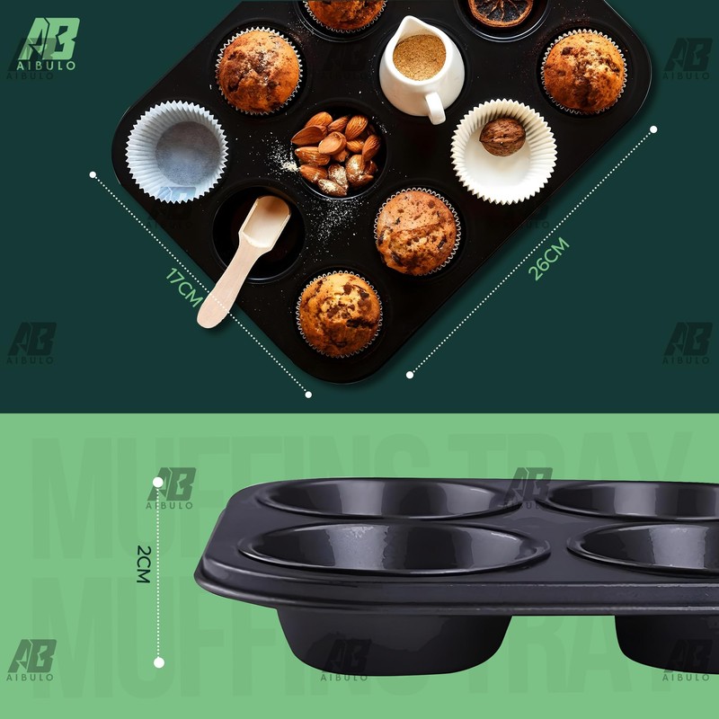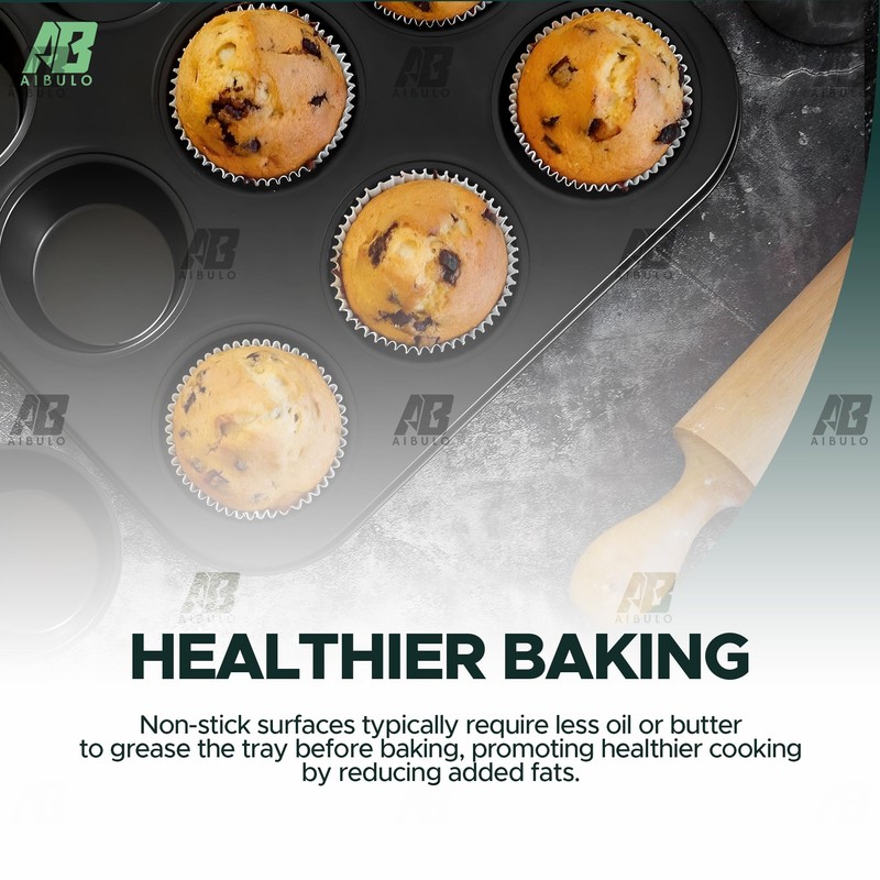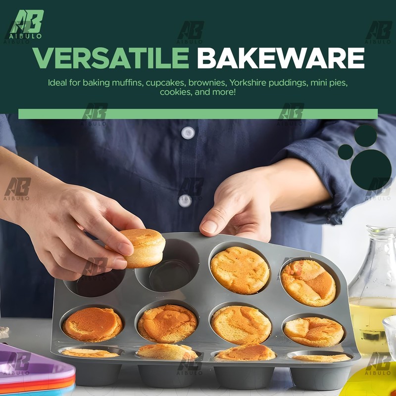 AIBULO 12 Cup Muffin Tray Nonstick, Durable Carbon Steel Baking Tray for Muffins, Cupcakes, Yorkshire Pudding & More