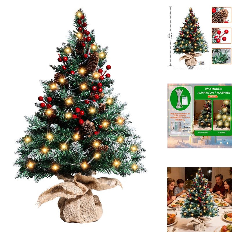 AICase 24" Tabletop Artificial Mini Christmas Tree with LED Light & Ornaments Xmas Tree