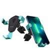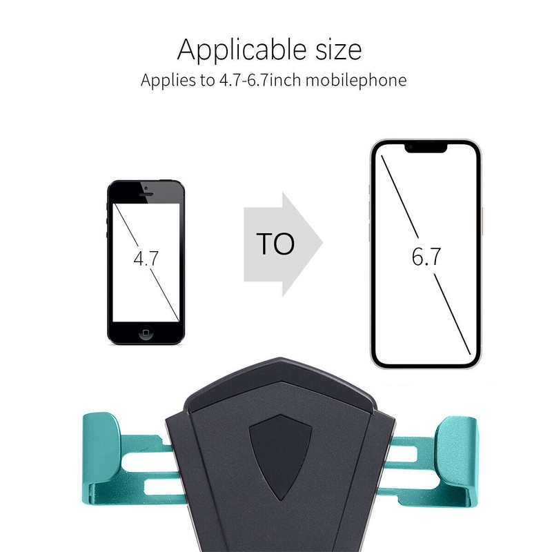 # No-Touch Design Just clamp it on the air vent, pick up/put down your phone without 1 seconds by single hand. Gravity linkage, automatic lock and release, free your hand while driving.Gravity Auto Technology make your phone easy to put in and take out. The clamp automatically adjusts to fit and release, simple operation, save time and power.