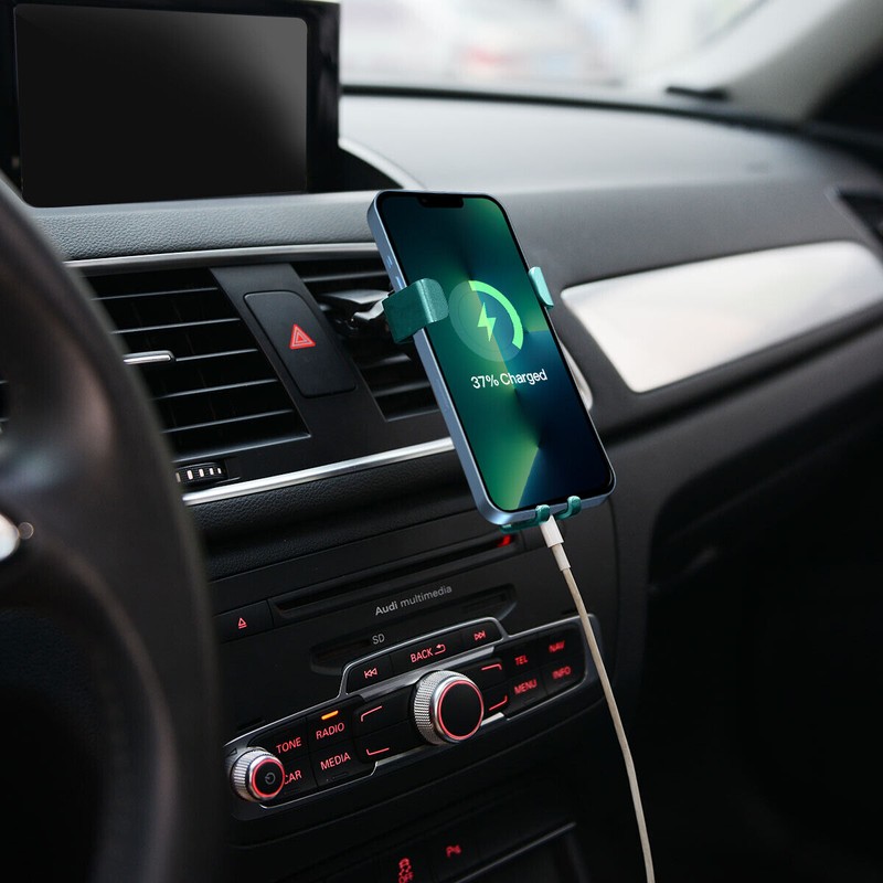 Stable and Scratch-proof Equipped with Elastic Clamp, hold the Air Vent firmly. Soft rubber mats are added on both the arms of the phone holder and the vent clamp, slip-proof shock-proof, protect the air vent of your car and cell phone from damaging.