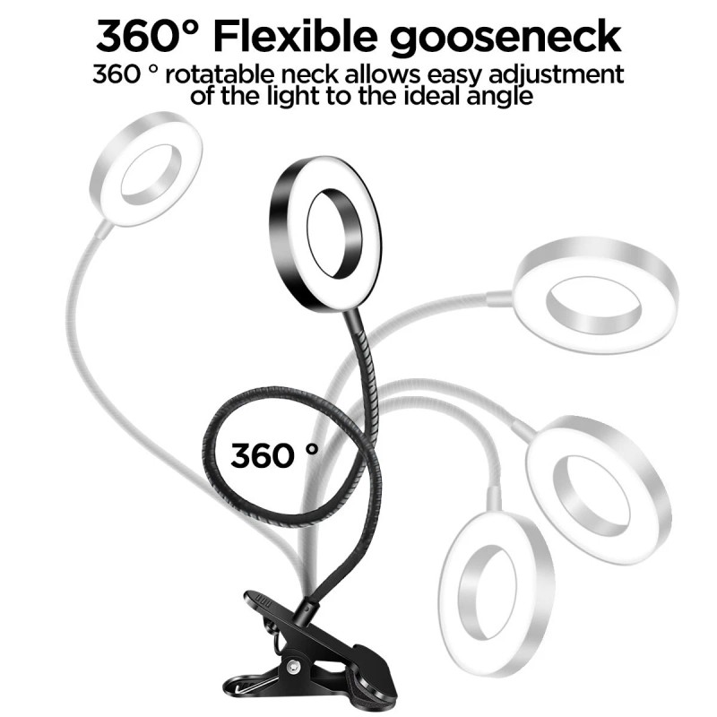 360° Flexible Gooseneck, Durable flexible gooseneck made of premium aluminum alloy, allows you to adjust your clip light with ease and to direct the light wherever you want.