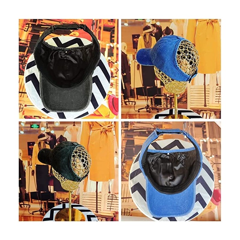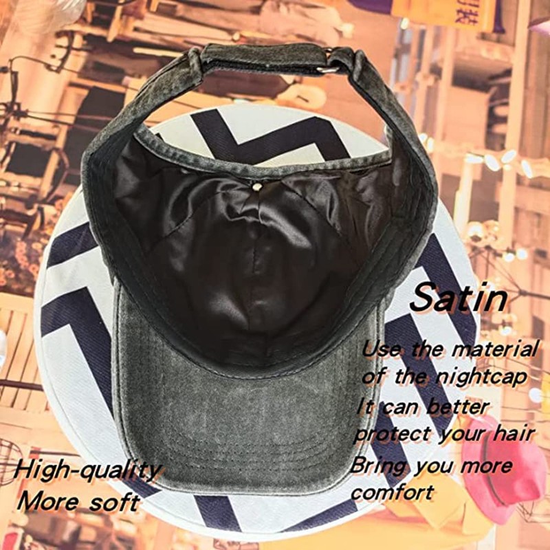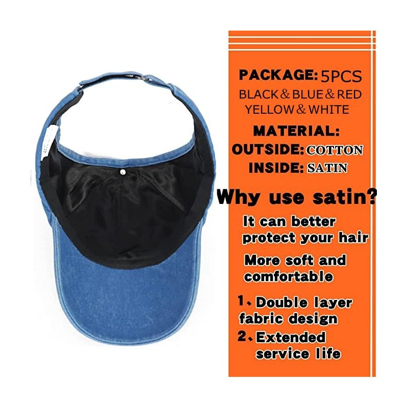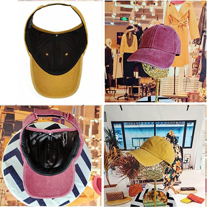 - Esta gorra de béisbol para cola de caballo está hecha de algodón que es suave y cómodo y una es de tela y la otra es de tela lavada