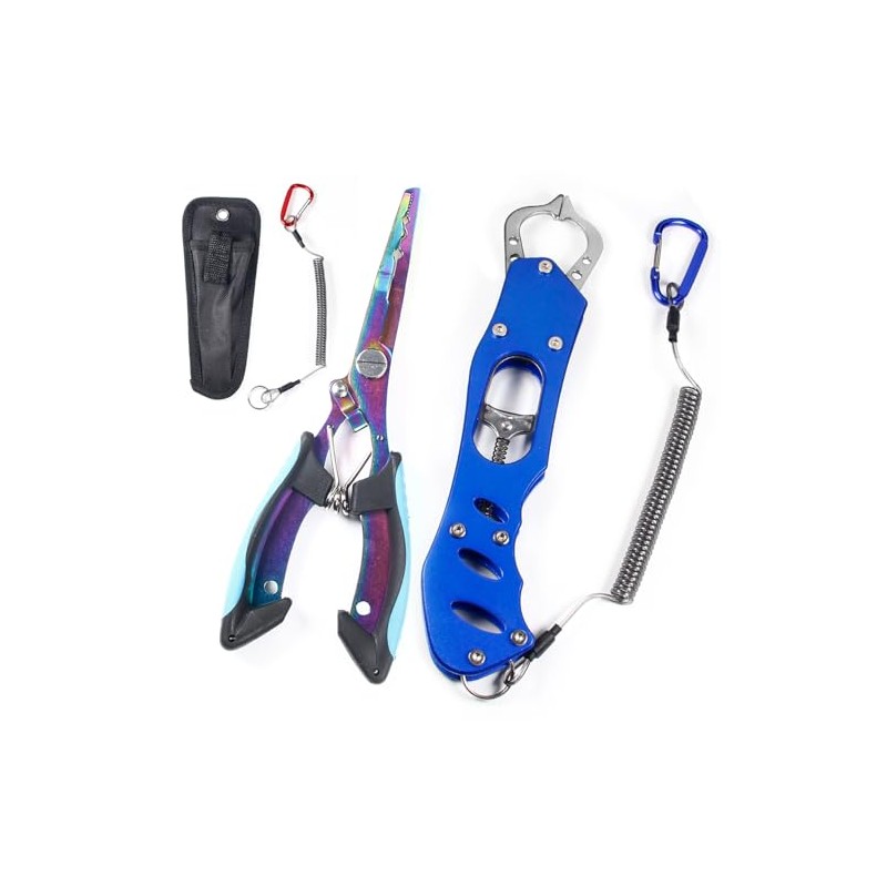 - Package Contents: Fishing pliers and fish grips. Main materials are stainless steel and aluminum alloy. Comes with 2 safety ropes and a fishing pliers storage bag, convenient to carry with pliers