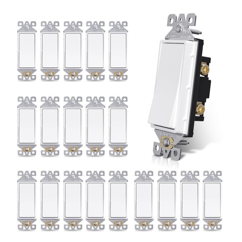 AIDA Matte White Single Pole Decorator Light Switch, 15Amp, 120/277V, Decorative Paddle Rocker Switch Replacement, Electrical Wall Switch,Residential/Commercial Grade, UL/CUL (20 Pack)