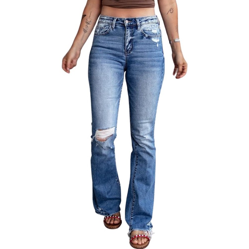 AIDAYOU Jeans acampanados rasgados para mujer, longitud pequeña y mediana, Azul/claro, M