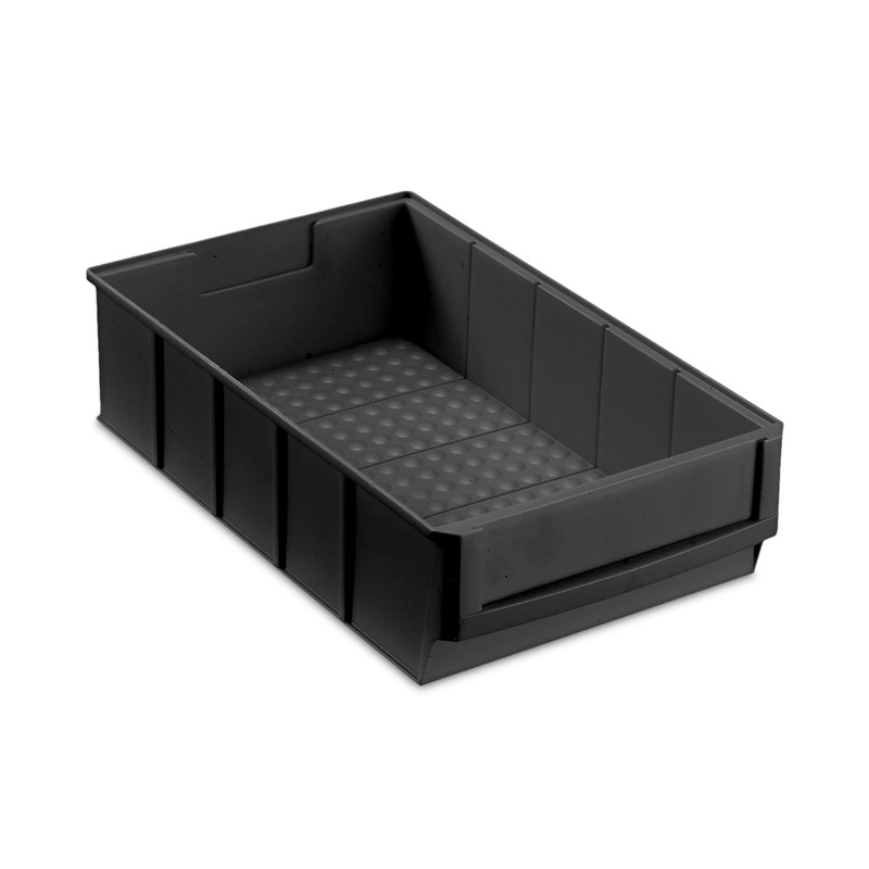 aidB Industrial Box, 300 x 183 x 81 mm, Wide, Black, Conductive, Robust Plastic Storage Box, Stackable Storage Box, Ideal for Industry
