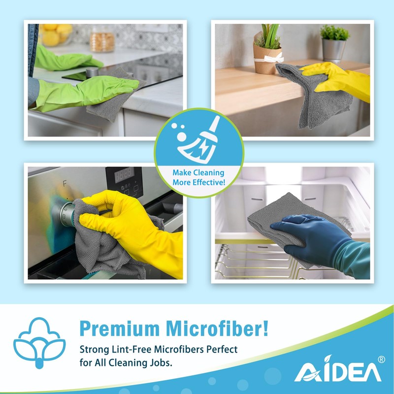 AIDEA AIDEA Microfibre Cloth Pack of 8, Multifunctional Reusable Cleaning Cloths, Lint Free Streak Free Washable Cloth Duster for House, Kitchen, Car, Motorbike, Windows 30 x 30 cm, Grey