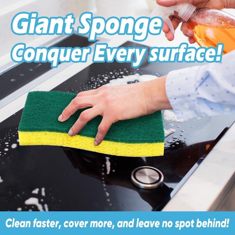 • Meet the GIANT of Clean: The cleaning BEAST; Industrial-strength scour pads DESTROY stuck-on food; Ultra-dense core LAUGHS at wear; Obliterates grime in seconds - bigger, tougher, and unstoppable!