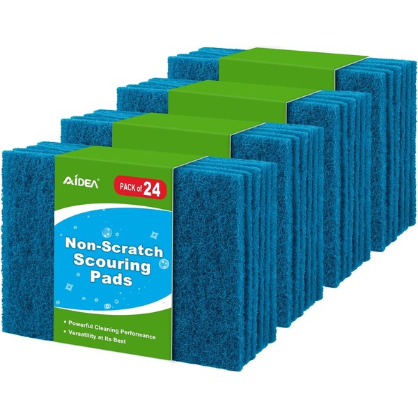 AIDEA Non-Scratch Scouring Pads, Dish Scrubber Pads for Household and Kitchen, Multipurpose Scour Pads for Cleaning, 24 Pack, 5.5in*3.5in