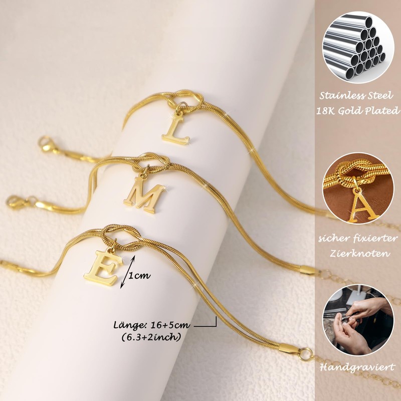 - MATERIAL: Our initial bracelet is made of hypoallergenic 27K gold plated material. It is durable, does not fade and is lead and nickel free. Suitable for all-day comfort.