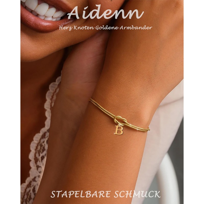 Aidenn Knot Bracelet Women's Gold with Letters Waterproof Bracelets Set 18k Gold-Plated Charm Bracelet Adjustable Stackable Golden Bracelet Gift for Women Jewellery