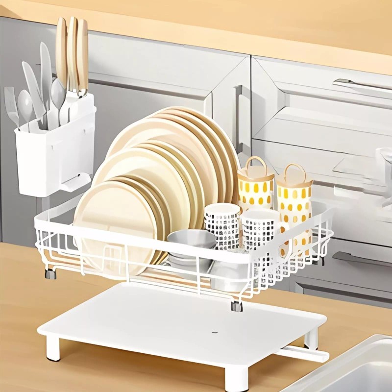 AIDERLY Large Dish Drying Rack Kitchen Shelf w/ Drainage Knife Fork Utensil Cup Holders