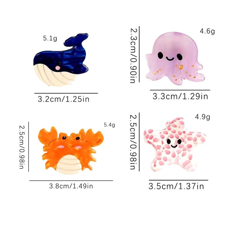 - Surprise your loved ones with this delightful set of ocean animal hair clips, Made of high-quality acetic acid material - for birthdays, holidays, or special occasion. Kids and adults alike will adore these cute and playful clips!