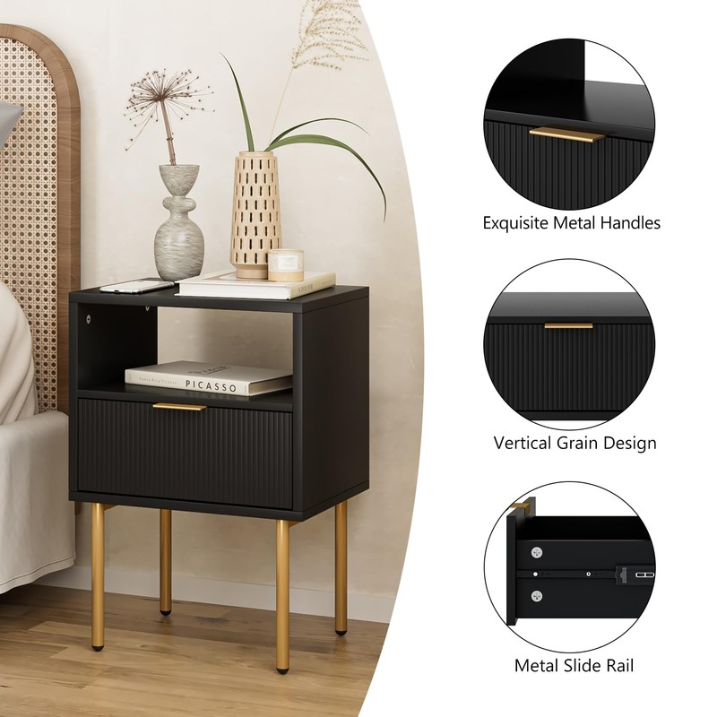 - Simple Modern Design: Classic colour and matte gold combination brings modern fashion to this clean-lined night stand. It is suitable for various styles of home decoration. It can also catch eyes as a side table or end table throughout the home,adding elegance to home life.