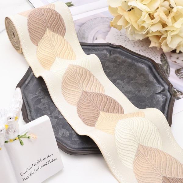 AIETSYEI Jacquard Ribbon 2.8 Inches Wide Leaf Lace Ribbon Embroidery Sewing L...