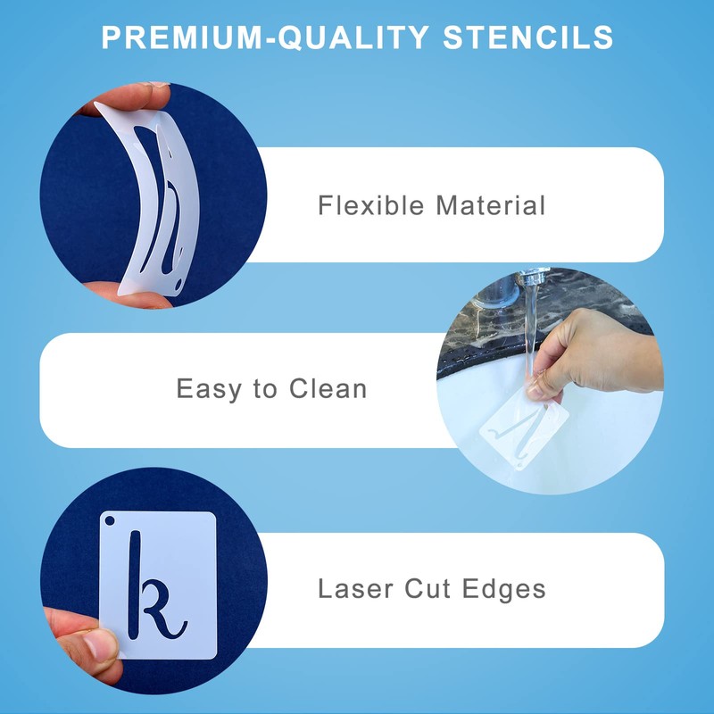 - Premium Material: These stencils are made of premium clean PET material, and cut by laser, thin and strong, lightweight and super durable. Smooth edges and round corners can protect your hands.