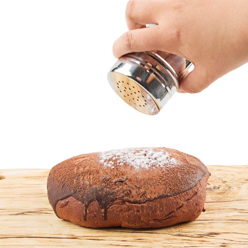 Large hole tops for sprinkling powdered sugar into icing to adjust the thickness