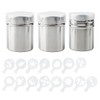 - FINE-MESH TOPS: 2 Pcs stainless steel containers with a fine sift screen, uniform & dense, allows for the perfect amount of salt, flour, pepper or coco, cinnamon powder to be dispensed.