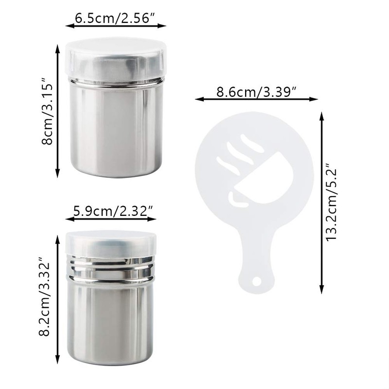 - FUNCTION: Food grade 304 stainless steel for long use. Ideal tools for shaking salt, pepper and powdered sugar or decorating cakes and cupcakes.