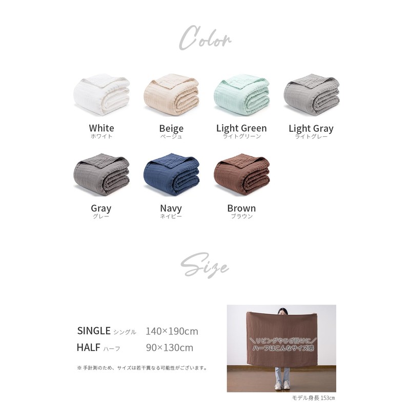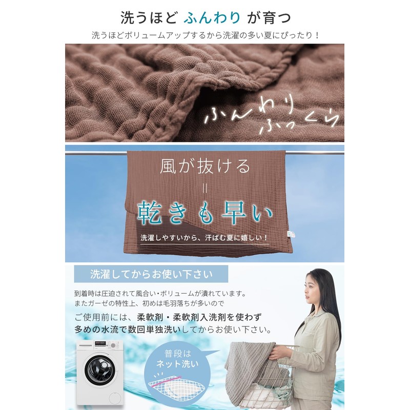 - (Cooling Protection) 6-ply gauze that provides a pleasant sleep. 6 layers of gauze fabric for a soft feel and moderate breathability. Can be used for a long time from spring to summer. It can be used comfortably during the summer as a countermeasure against air conditioning, and even for tropical nights