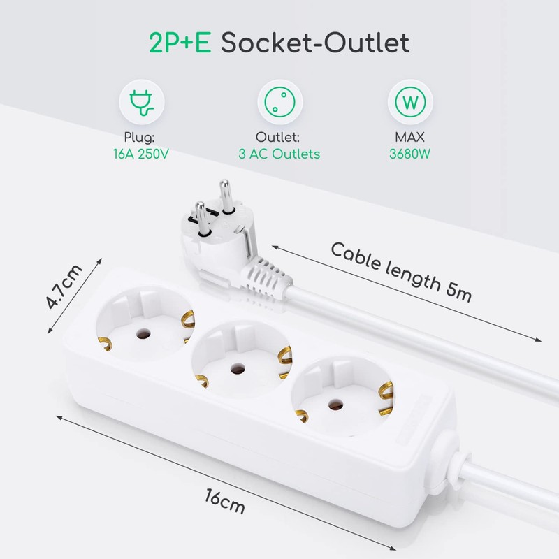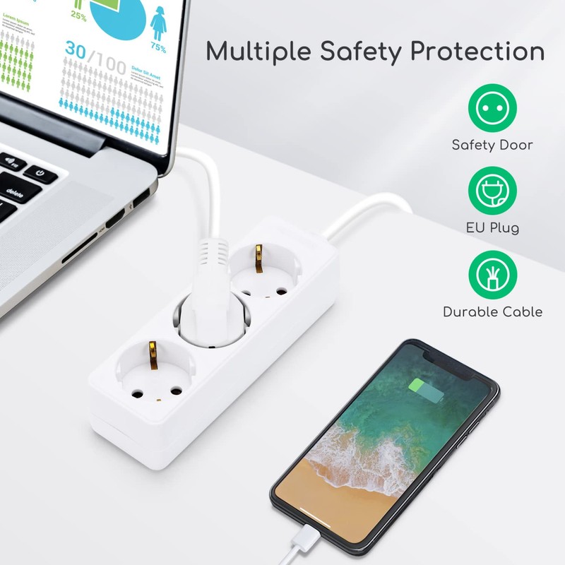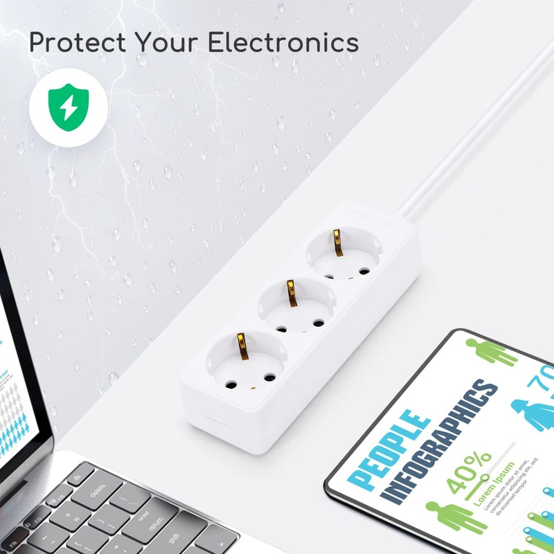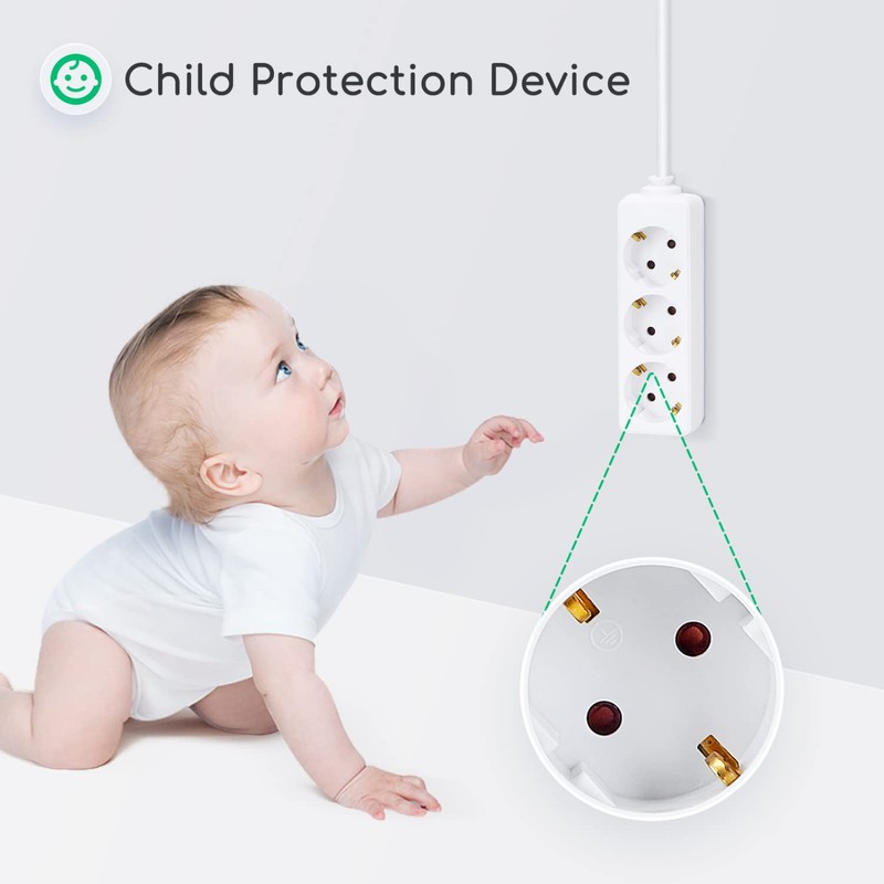 Aigostar 3-Way / 5-Way Socket Strip with Switch Surge Protection Table Socket Child Safety White