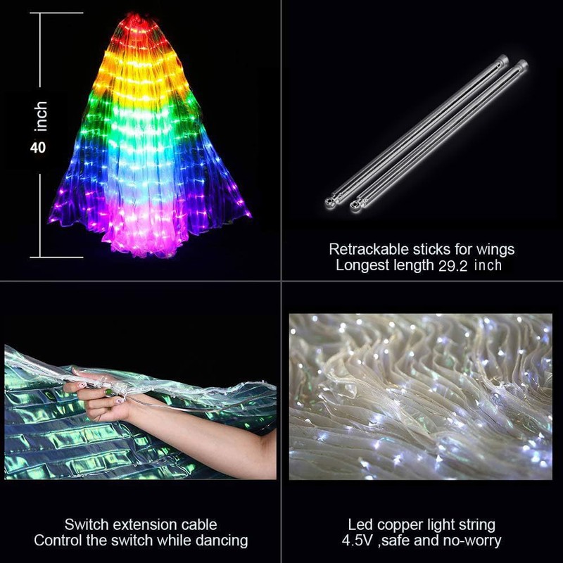 - Shiny Color: Built-in 180 PCS high quality LED lamp beads with 5 colors, 360 degrees high brightness and extension, make your performance amazing and eye-catching with this LED dancing wings