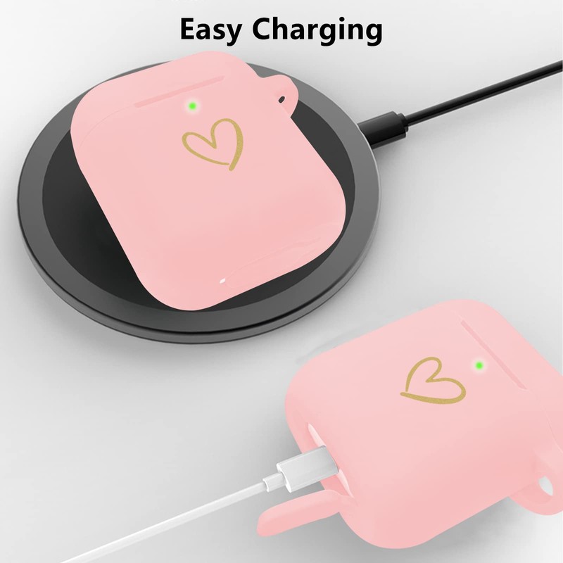 - 【Designed for Women & Girls】Unique golden heart pattern, cute appearance design makes your AirPods 2&1 more attractive. Specially matched with a large rhinestone studded letter A-Z keychain,you can choose the alphabet that belong to you.
