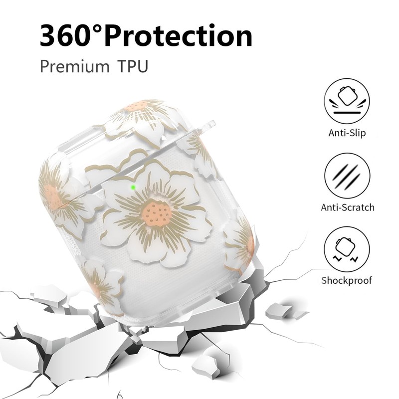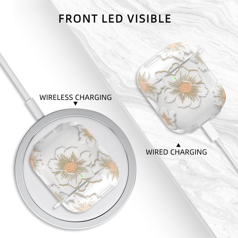 - 【Designed for Women & Girls】Unique flower pattern, cute appearance design makes your AirPods 2&1 more attractive. Specially matched with a cute flower keychain and metal carabiner for your convenience.