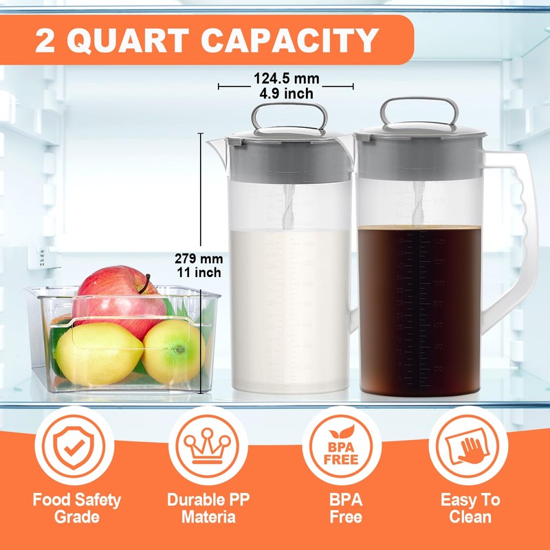 - Thickened Plastic Pitcher: Our pitcher with mixing plunger is made of high quality pp matterial, which is thick, stable, reliable and not easy to be damaged. The transpresent design of pitcher can make user easily identify the liquid inside, and the graduated design make user control the ratio of water and recognize rest of capacity.