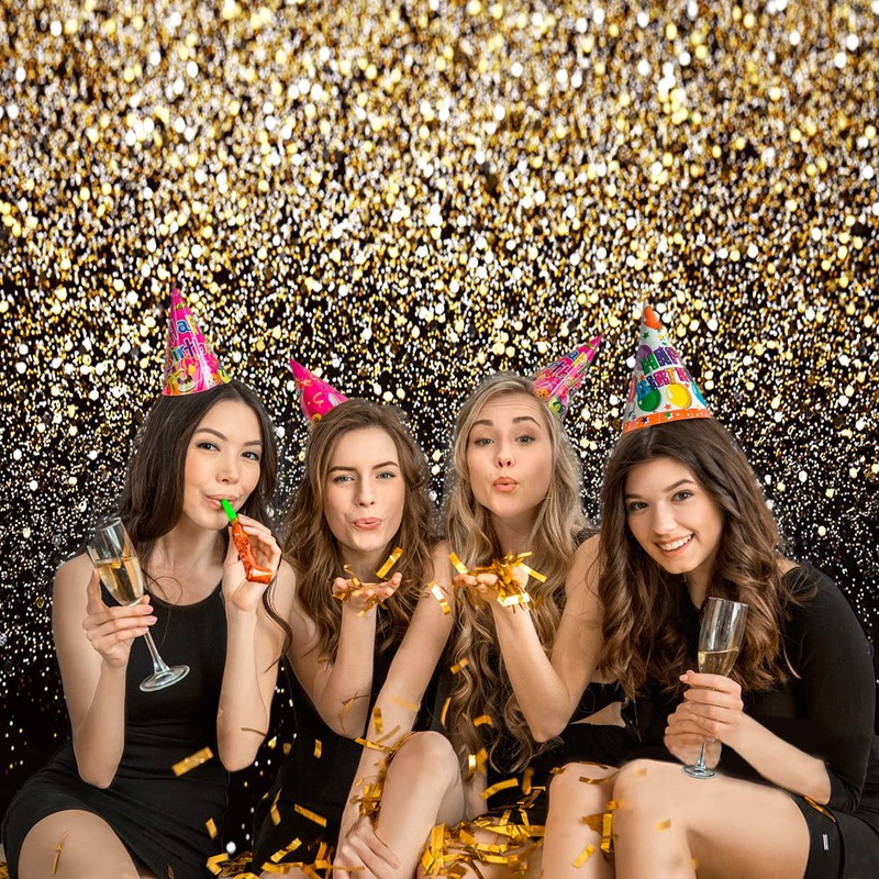 AIIKES 10x10FT Golden Bokeh Photography Backdrop Black and Gold Glitter Backdrop Wedding Family Birthday Party Decoration Newborn Photo Backdrop Studio Props 11-547