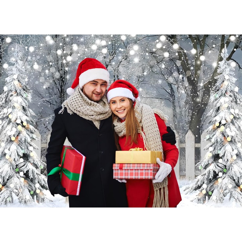AIIKES 10X8FT Winter Photography Backdrop Glitter White Snow Forest Pine Tree Backdrop Christmas Holiday Party Decor Banner Kids Portrait Photo Studio Props 12-621