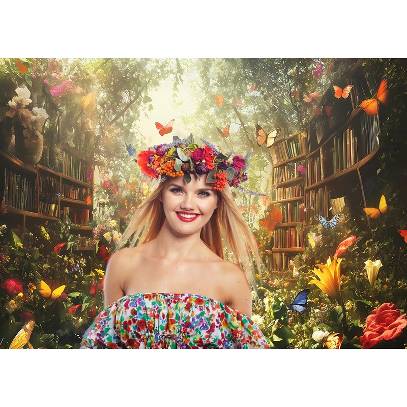 AIIKES 7x5FT Spring Backdrop Enchanted Forest Fairy Tale Backdrop for Photography Bookshelf Butterfly Flowers Birthday Party Decor Background XY146