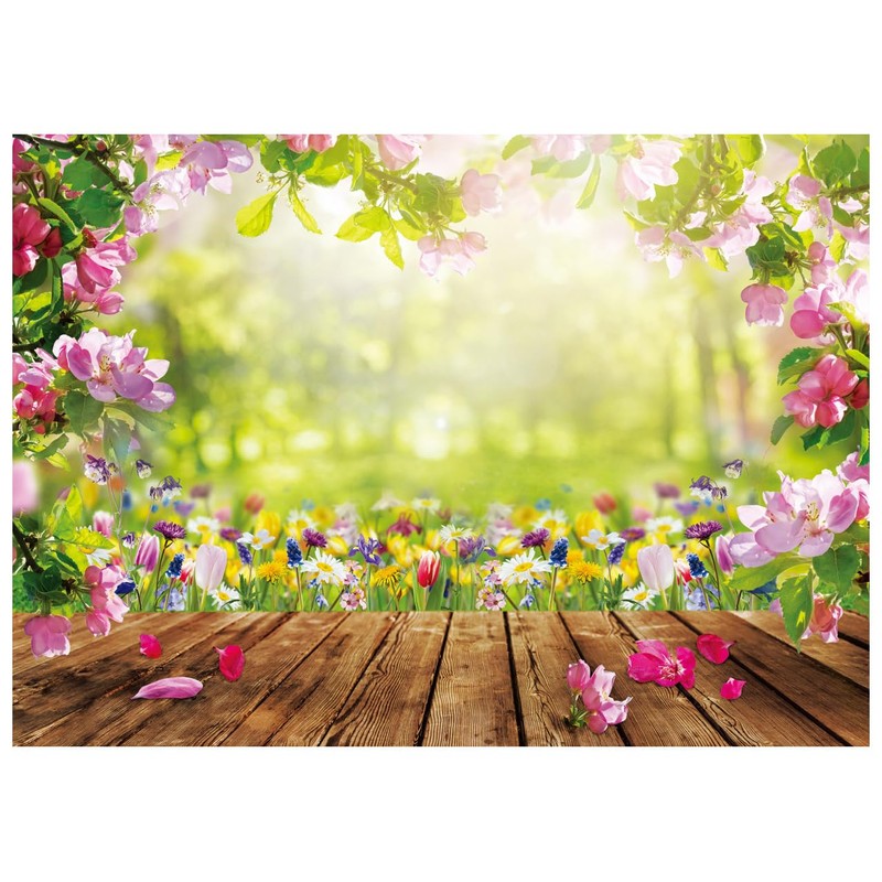 AIIKES 8x6FT Spring Photography Backdrop Spring Natural Scenery Flower Backdrop Spring Wood Flooring Backdrop Baby Birthday Wedding Party Decoration Backdrop Studio Props 12-661