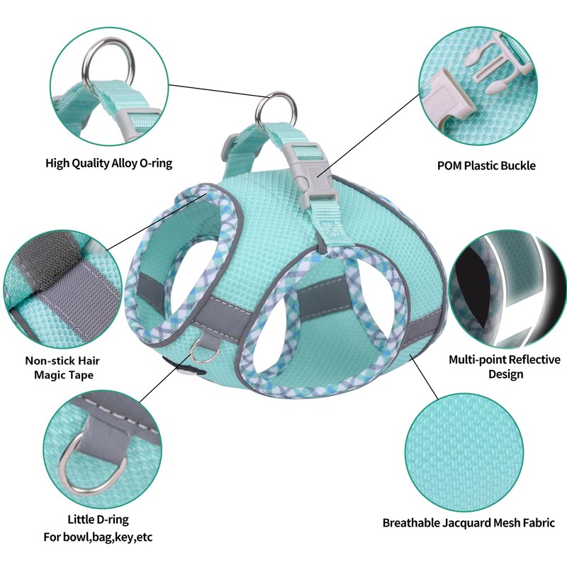 AIITLE Dog Harness and Leash Set, No Pull Step in Puppy Harness with Super Breathable Mesh, Adjustable Reflective Puppy Essentials for Outdoor Walking, Training for Small Dogs, Cats Turquoise XS