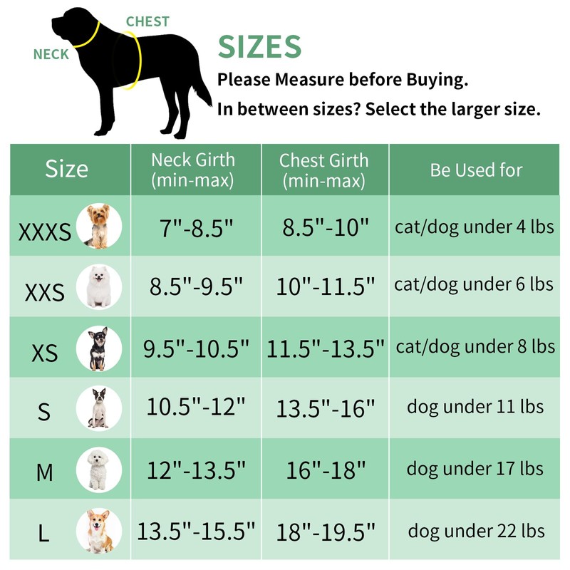 - IMPORTANT SIZE GUIDE - NOT directly correspond to your pet's breed or weight. Please MEASURE your pet's chest (full part) girth and neck girth before purchase. Sizing does You can refer to Our Size Guide and sizing chart for the best fit. If in between sizes, please order one size up. AIITLE Cats Small Dog Vest Harness include the sizes from XXXS-L for Small Medium breed up to 22 lbs, such as Boston Terrier, Maltese, Pekingese, Shih Tzu, Chihuahua, Poodle, Papillon, Teddy, Schnauzer and so on.