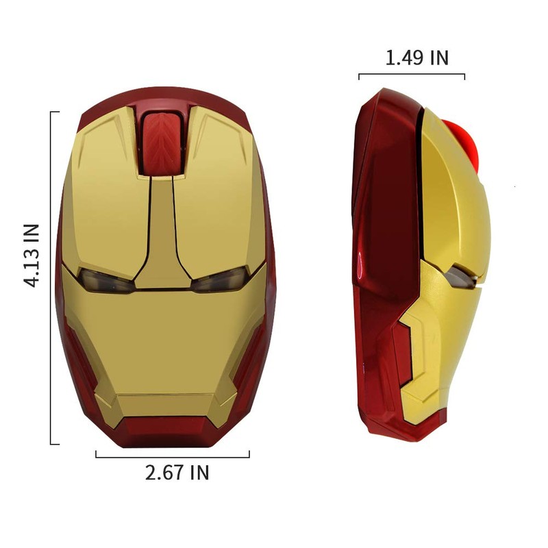 Aikchi Wireless Iron Man Mouse, Noiseless Optical Mouse for Desktop Laptop PC Computer Mice, Power Saving LED Decor Adjustable DPI 2.4GHz Mouse (Gold)