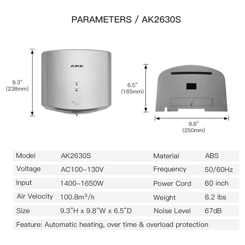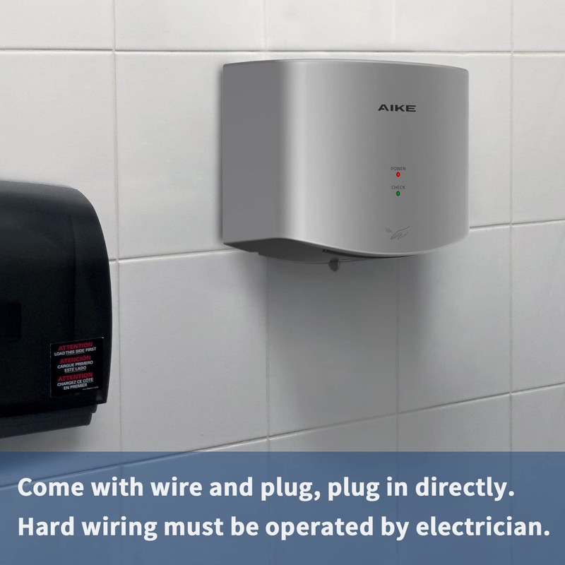 AIKE AIKE Air Wiper Compact Hand Dryer 110V 1400W Silver (with 2 Pin Plug) Model AK2630