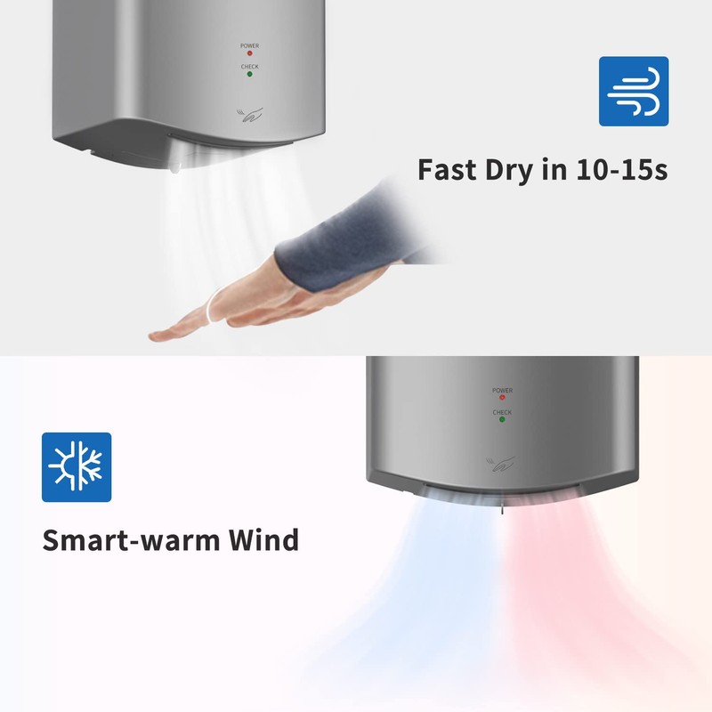 - Compact Design - Fast dry within 10-15s. Compact size, strong airflow. Designed for limited space area, but still meet commercial grade requirement.