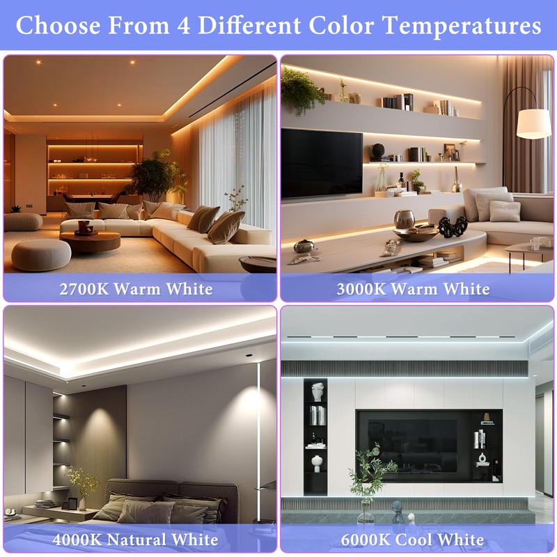 - Versatile Indoor Applications: These flexible LED strip lights are IP20 rated, non-waterproof, and designed exclusively for indoor use. Their superior flexibility allows you to achieve the ideal lighting solution for any space. Use them in bedrooms, living rooms, kitchens, on stairs, in corridors, under cabinets, around vanity mirrors, dressing tables, in closets, on bookshelves, wine racks, as TV backlights, or for other DIY lighting projects
