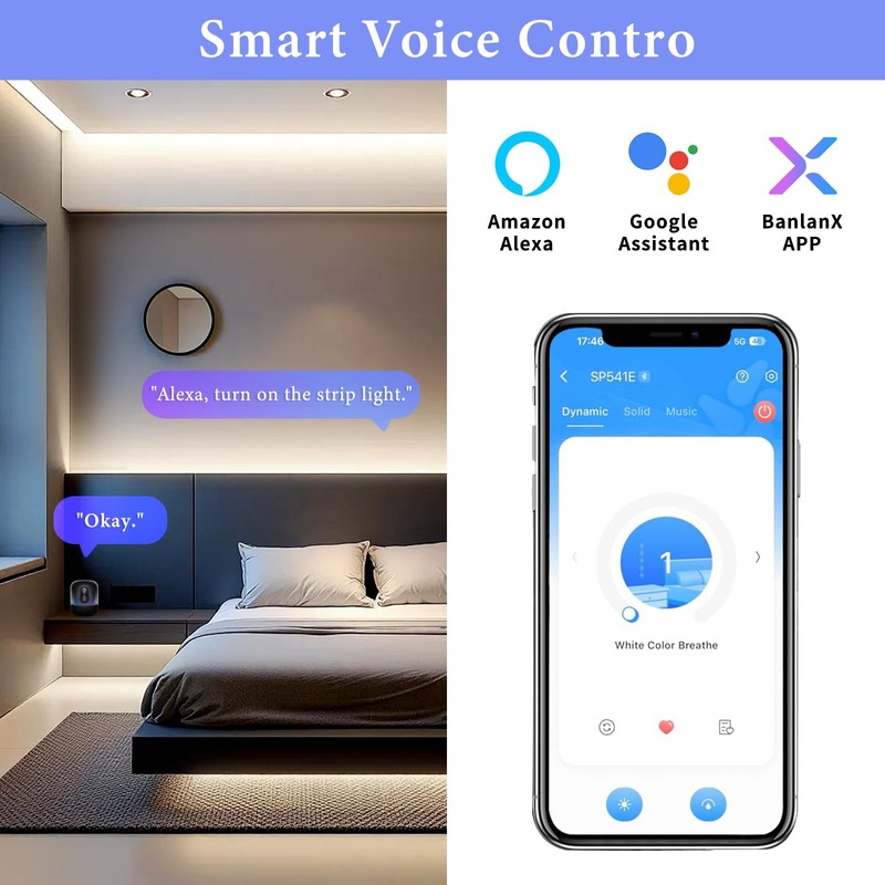 - Smart Control at Your Fingertips: Take control of your lighting like never before. Compatible with third-party voice devices such as Alexa and Google Assistant, these strips allow you to adjust brightness, switch modes, and create personalized scenes using simple voice commands or the intuitive “BanlanX” app. Suitable for setting the mood in any room. Note: Detailed connection steps are available in the BanlanX app. Simply click “Me” on the app’s homepage to find “Third-Party Voice Services.”
