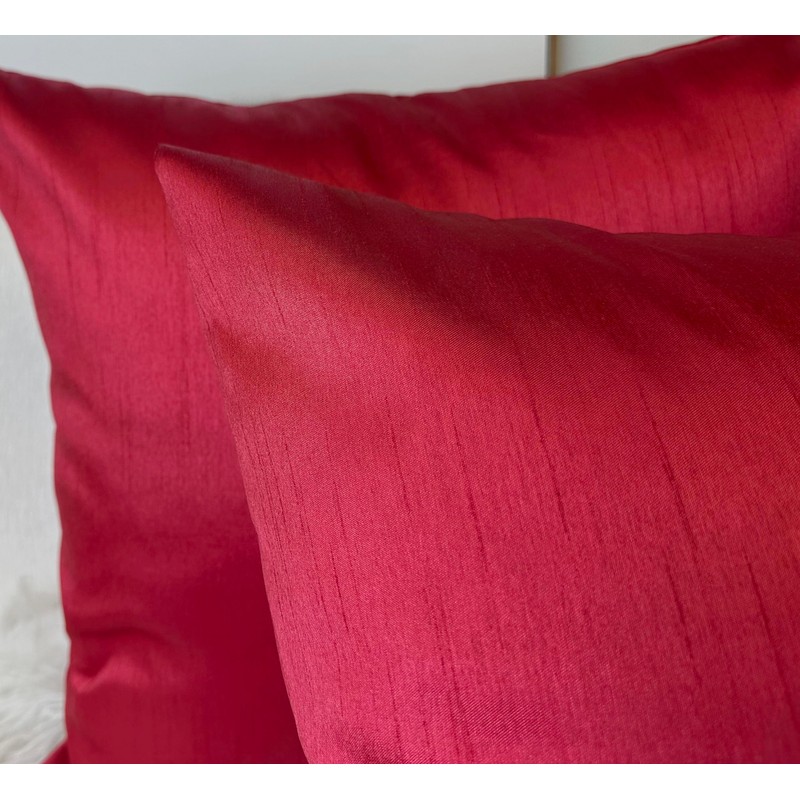 Aiking Home 20x20 Inches Faux Silk Square Throw Pillow Cover, Zipper Closure, Red (Set of 2)