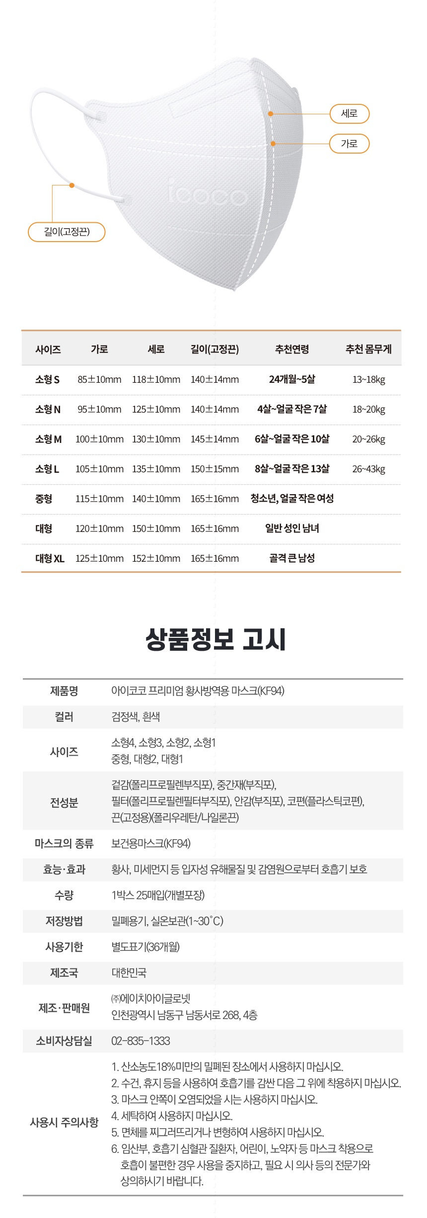 - Product Name and Model Name: Name: Aikoko KF94_Large_B_50 sheets / Model Name: Specified per Product