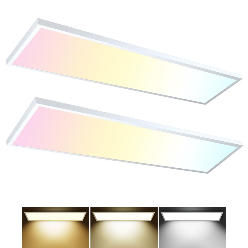 AIKVSXER 2PACK 1x4 LED Flat Panel Light Surface Mount LED Ceiling Light, 5500LM 50W TRIAC 10-100% Dimmable, 3000/4000/5000k Selectable, 120V Kitchen Ceiling Light Fixtures for Garage/Laundry White