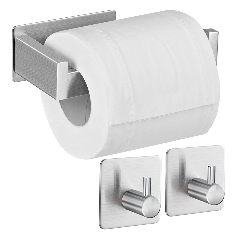 - Wide compatibility: high-quality self-adhesive toilet roll holder with clean lines, ideal for bedroom, bathroom and toilet, suitable for tiles, wood, plastic and glass. The L-shaped design of the toilet paper holder ensures that the toilet paper can be smoothly rotated away from the wall. The hooks on the back effectively prevent the paper from slipping.