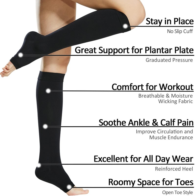 Ailaka 20-30 mmHg Compression Calf Socks for Women & Men, High Open Toe Graduated Support Varicose Veins Knee Stockings Hosiery, Travel, Nurses, Pregnancy, Recovery