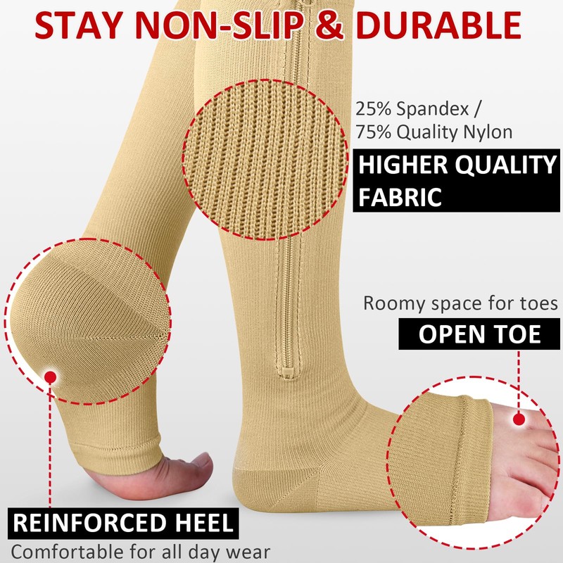 - SUIT YOUR ACTIVITIES: Designed for everyday and outdoor use, these zippered support socks are perfect for professions that require long periods of standing such as doctors, nurses, teachers, flight attendants, hairdressers, salespersons, and police officers. They are also beneficial for the elderly and individuals recovering from surgery.
