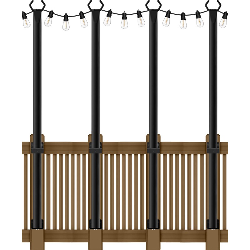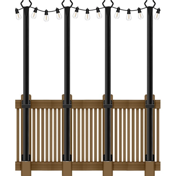 - 【Easy to install】Our light string poles are multi-segment design, very easy to install, the middle part is spiral design, you can finish the installation faster, after assembled, you can fix it on the deck and fence with external fixing clips.