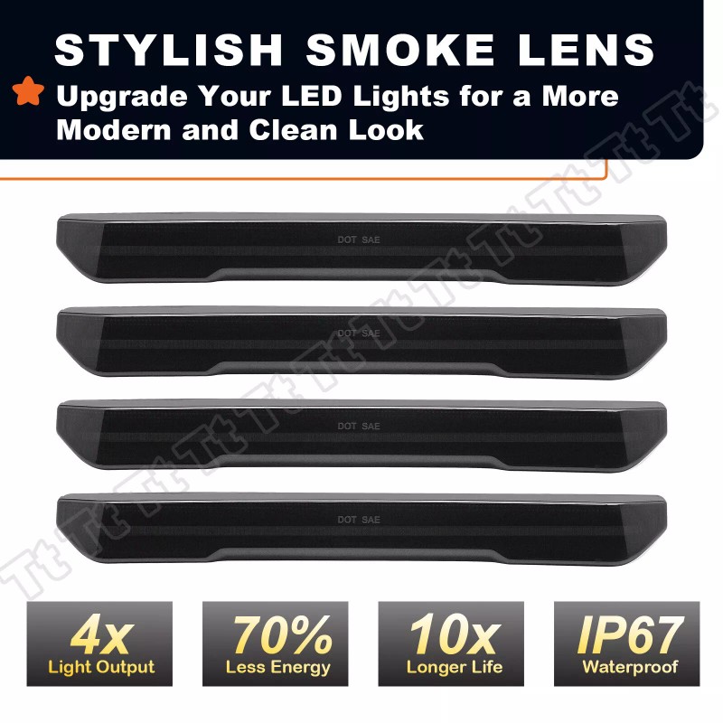 Ailead 4X For 2020-2024 GMC Sierra 2500 3500 HD LED Front Rear Side Marker Light Smoked